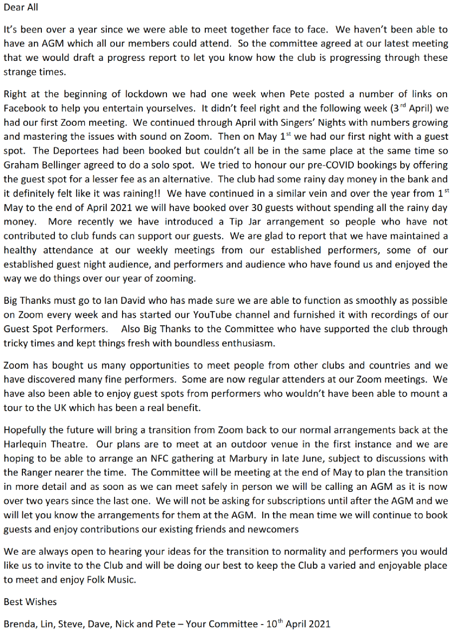 NFC Chairman’s Report April 2021